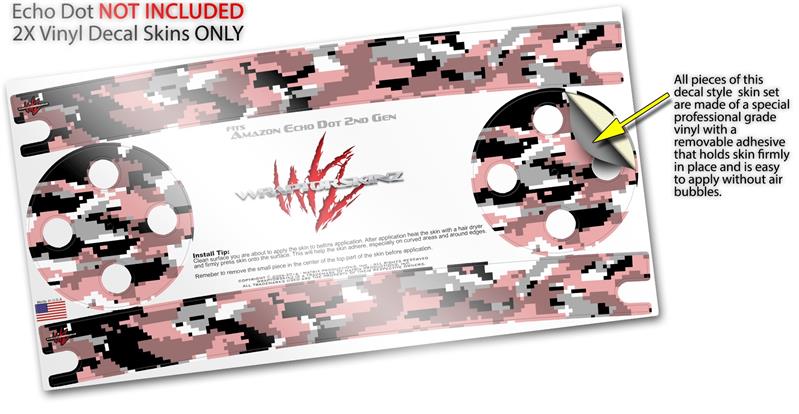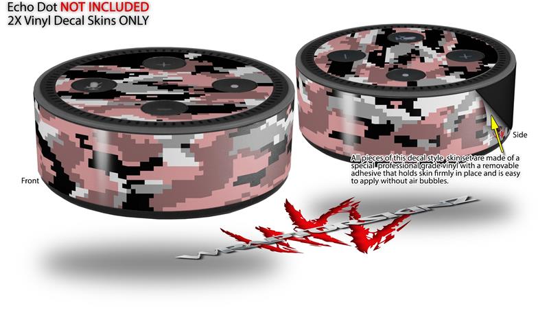 Skin Wrap Decal Set 2 Pack for Amazon Echo Dot 2 - WraptorCamo Digital Camo Pink (2nd Generation ONLY - Echo NOT INCLUDED)