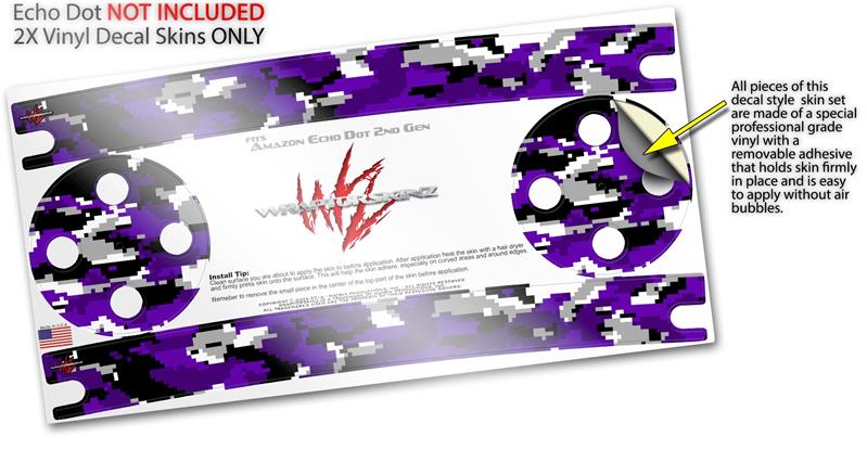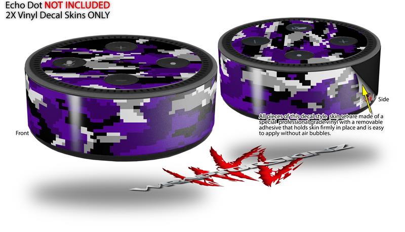 Skin Wrap Decal Set 2 Pack for Amazon Echo Dot 2 - WraptorCamo Digital Camo Purple (2nd Generation ONLY - Echo NOT INCLUDED)