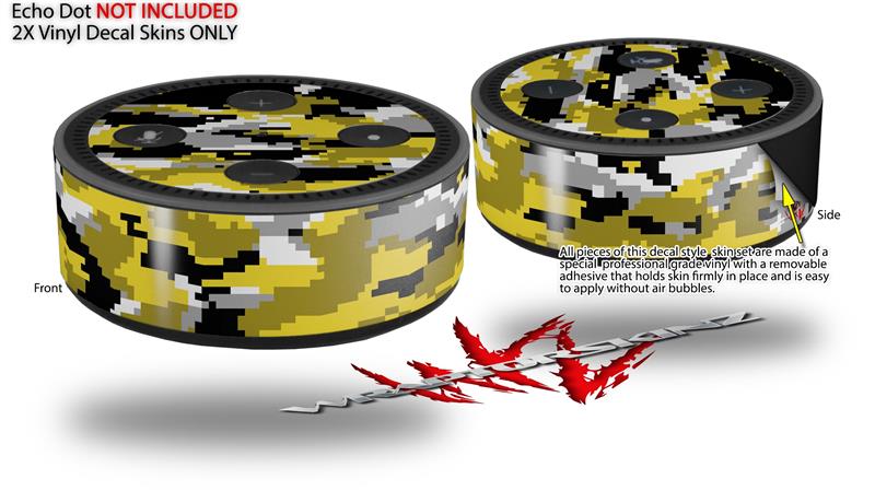 Skin Wrap Decal Set 2 Pack for Amazon Echo Dot 2 - WraptorCamo Digital Camo Yellow (2nd Generation ONLY - Echo NOT INCLUDED)