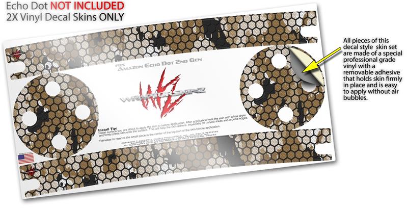 Skin Wrap Decal Set 2 Pack for Amazon Echo Dot 2 - HEX Mesh Camo 01 Tan (2nd Generation ONLY - Echo NOT INCLUDED)