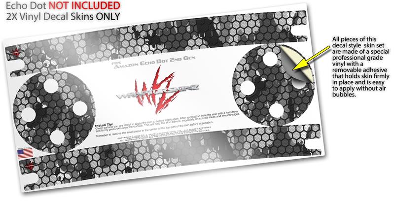 Skin Wrap Decal Set 2 Pack for Amazon Echo Dot 2 - HEX Mesh Camo 01 Gray (2nd Generation ONLY - Echo NOT INCLUDED)