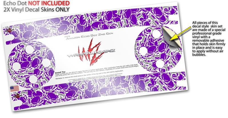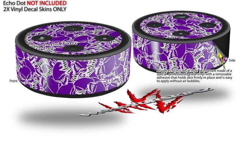 Skin Wrap Decal Set 2 Pack for Amazon Echo Dot 2 - Scattered Skulls Purple (2nd Generation ONLY - Echo NOT INCLUDED)