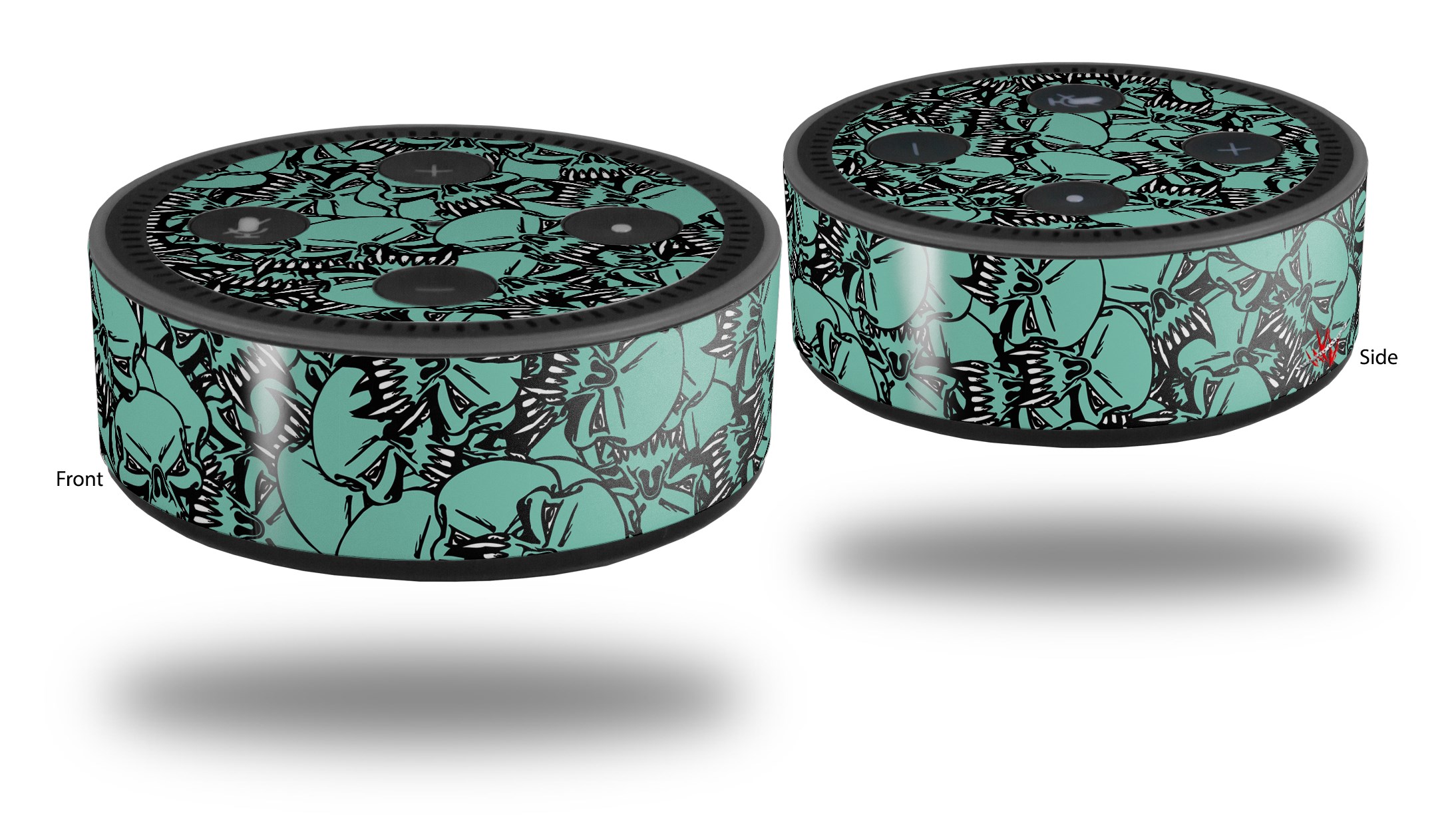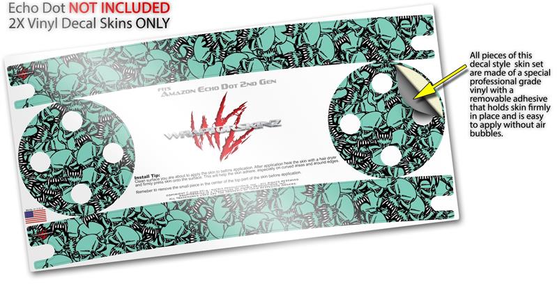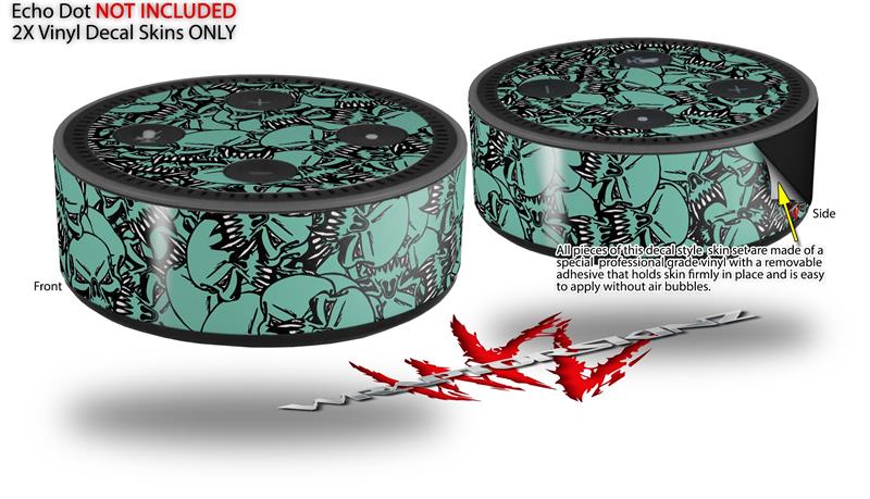 Skin Wrap Decal Set 2 Pack for Amazon Echo Dot 2 - Scattered Skulls Seafoam Green (2nd Generation ONLY - Echo NOT INCLUDED)