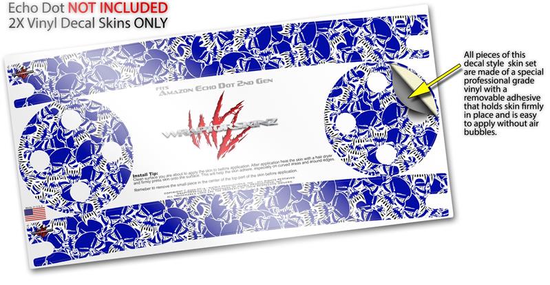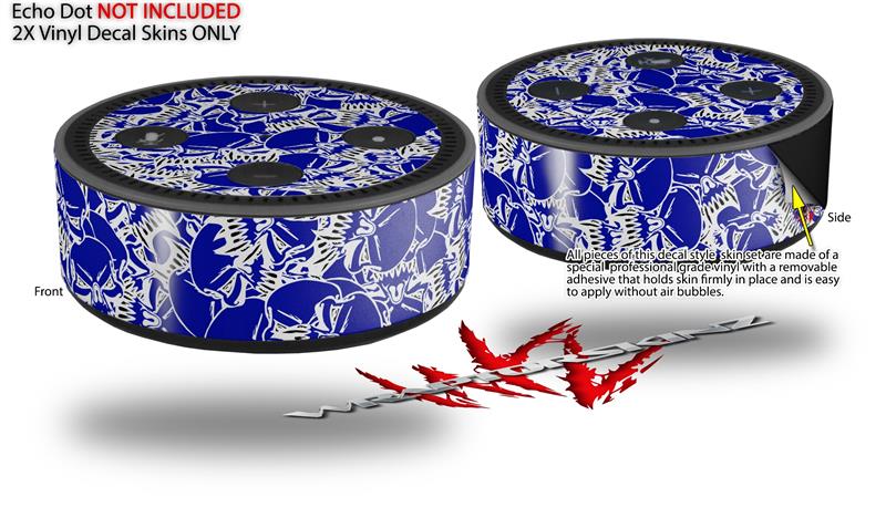 Skin Wrap Decal Set 2 Pack for Amazon Echo Dot 2 - Scattered Skulls Royal Blue (2nd Generation ONLY - Echo NOT INCLUDED)