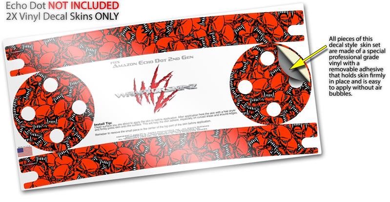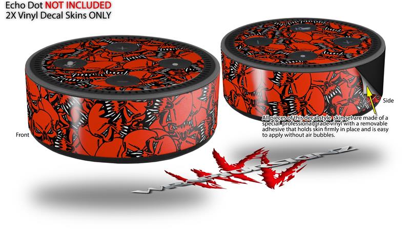 Skin Wrap Decal Set 2 Pack for Amazon Echo Dot 2 - Scattered Skulls Red (2nd Generation ONLY - Echo NOT INCLUDED)