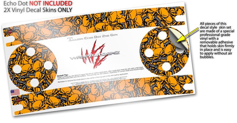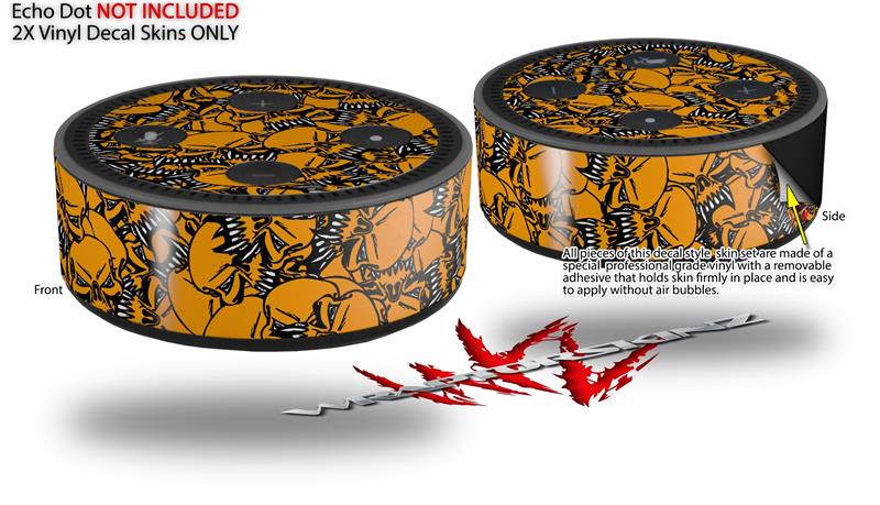 Skin Wrap Decal Set 2 Pack for Amazon Echo Dot 2 - Scattered Skulls Orange (2nd Generation ONLY - Echo NOT INCLUDED)