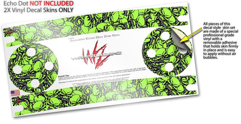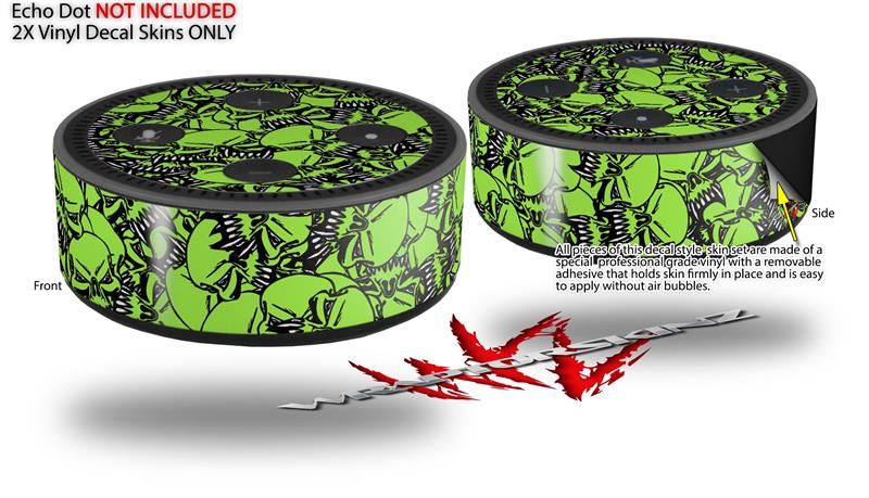Skin Wrap Decal Set 2 Pack for Amazon Echo Dot 2 - Scattered Skulls Neon Green (2nd Generation ONLY - Echo NOT INCLUDED)