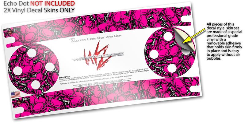 Skin Wrap Decal Set 2 Pack for Amazon Echo Dot 2 - Scattered Skulls Hot Pink (2nd Generation ONLY - Echo NOT INCLUDED)