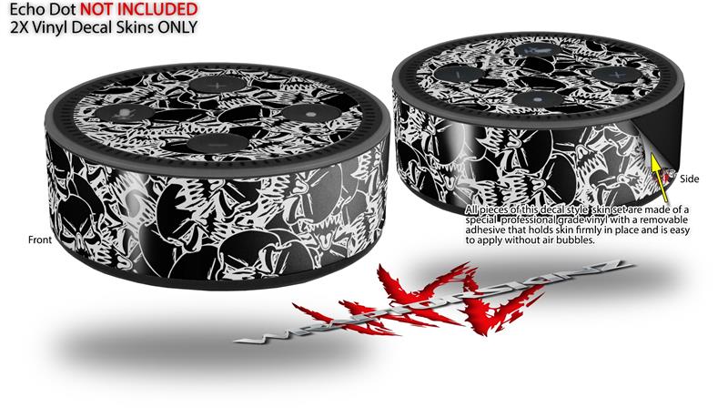Skin Wrap Decal Set 2 Pack for Amazon Echo Dot 2 - Scattered Skulls Black (2nd Generation ONLY - Echo NOT INCLUDED)