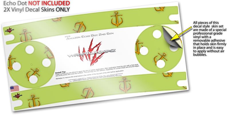 Skin Wrap Decal Set 2 Pack for Amazon Echo Dot 2 - Anchors Away Sage Green (2nd Generation ONLY - Echo NOT INCLUDED)