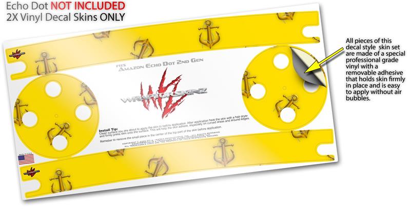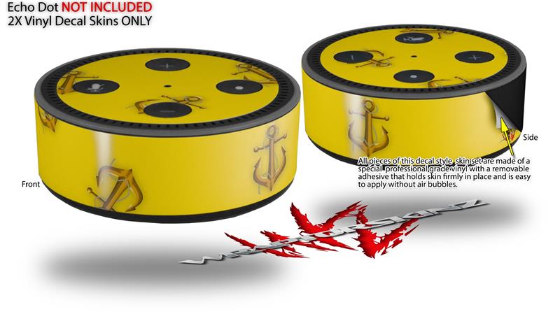 Skin Wrap Decal Set 2 Pack for Amazon Echo Dot 2 - Anchors Away Yellow (2nd Generation ONLY - Echo NOT INCLUDED)