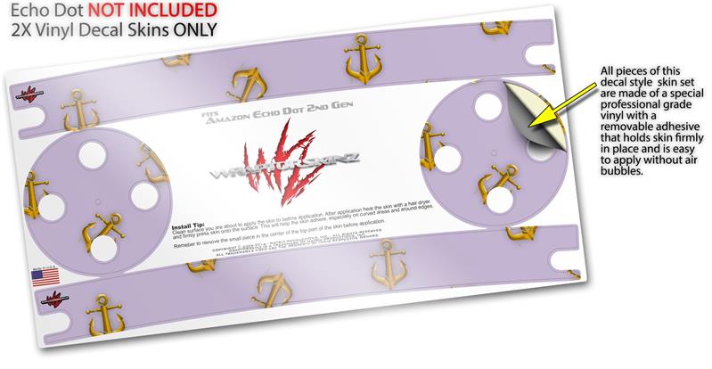 Skin Wrap Decal Set 2 Pack for Amazon Echo Dot 2 - Anchors Away Lavender (2nd Generation ONLY - Echo NOT INCLUDED)