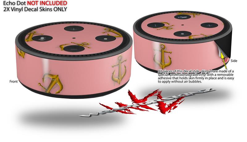 Skin Wrap Decal Set 2 Pack for Amazon Echo Dot 2 - Anchors Away Pink (2nd Generation ONLY - Echo NOT INCLUDED)