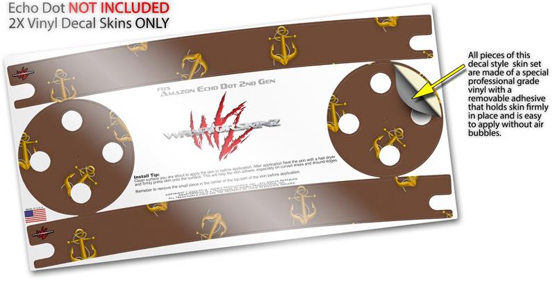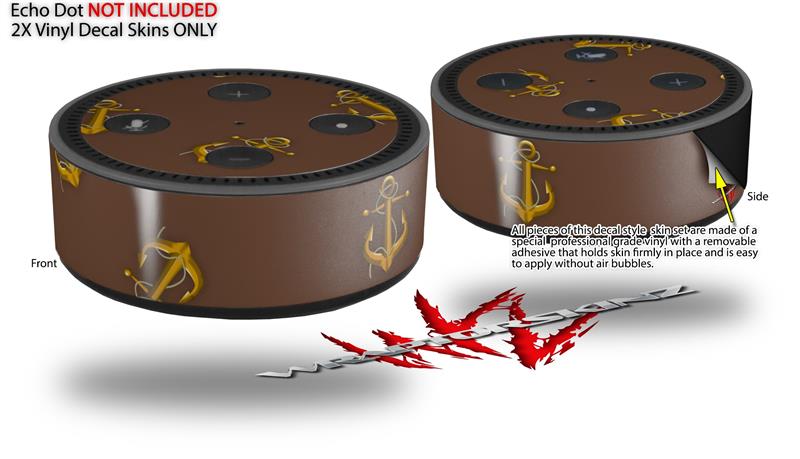 Skin Wrap Decal Set 2 Pack for Amazon Echo Dot 2 - Anchors Away Chocolate Brown (2nd Generation ONLY - Echo NOT INCLUDED)