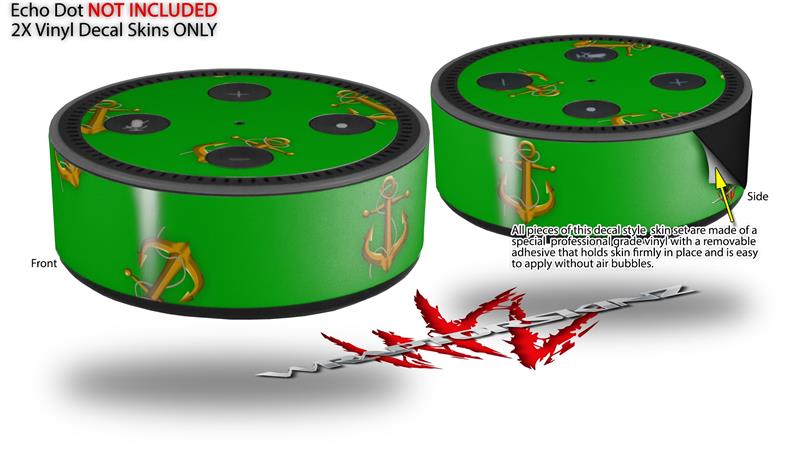 Skin Wrap Decal Set 2 Pack for Amazon Echo Dot 2 - Anchors Away Green (2nd Generation ONLY - Echo NOT INCLUDED)