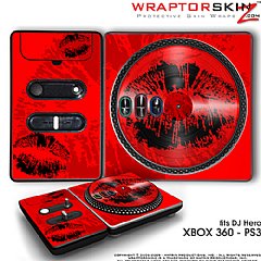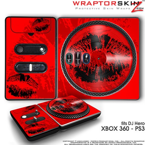 DJ Hero Skin Big Kiss Lips Black on Red fit XBOX 360 and PS3 DJ Heros
