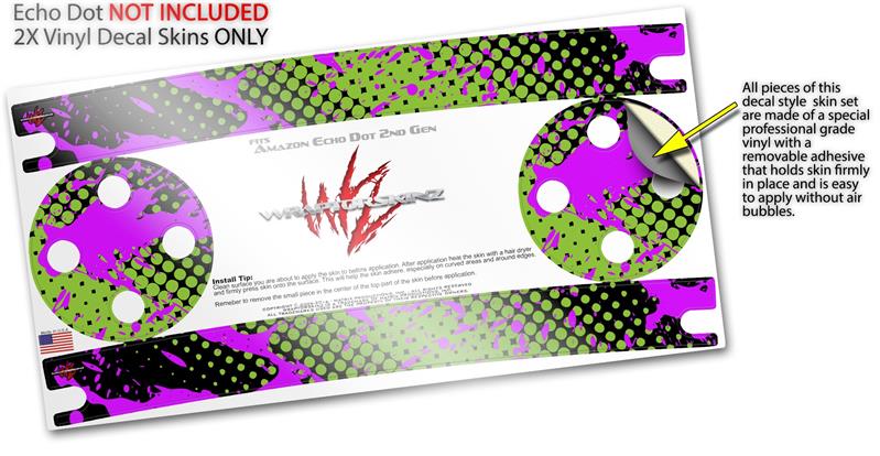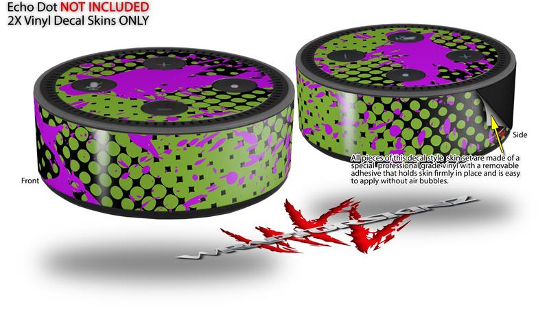 Skin Wrap Decal Set 2 Pack for Amazon Echo Dot 2 - Halftone Splatter Hot Pink Green (2nd Generation ONLY - Echo NOT INCLUDED)