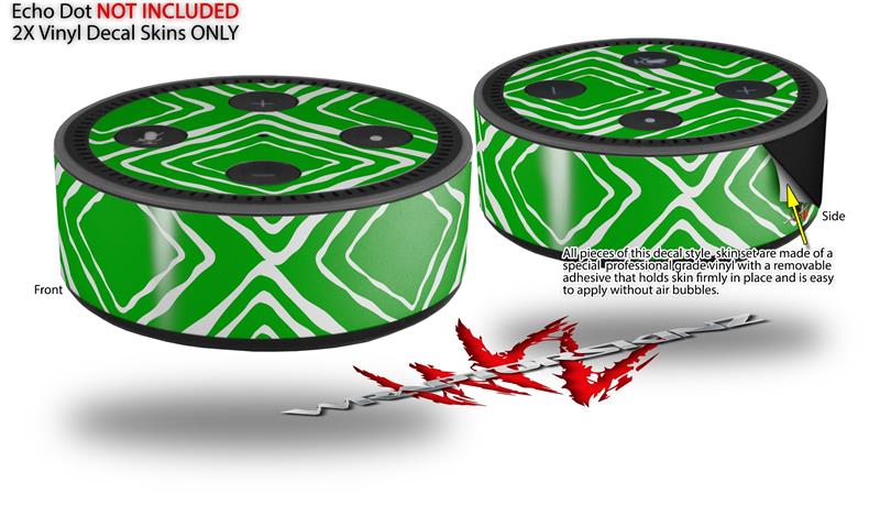 Skin Wrap Decal Set 2 Pack for Amazon Echo Dot 2 - Wavey Green (2nd Generation ONLY - Echo NOT INCLUDED)