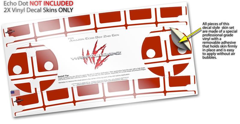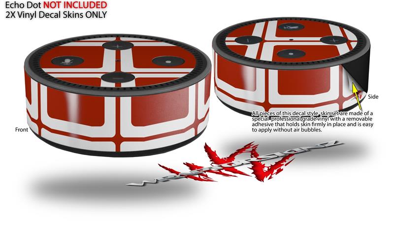 Skin Wrap Decal Set 2 Pack for Amazon Echo Dot 2 - Squared Red Dark (2nd Generation ONLY - Echo NOT INCLUDED)