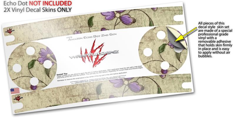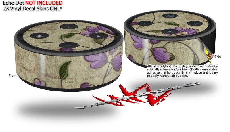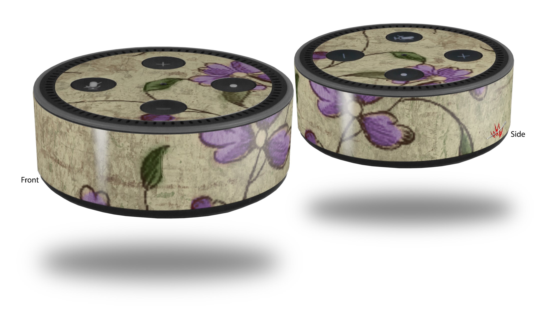Skin Wrap Decal Set 2 Pack for Amazon Echo Dot 2 - Flowers and Berries Purple (2nd Generation ONLY - Echo NOT INCLUDED)