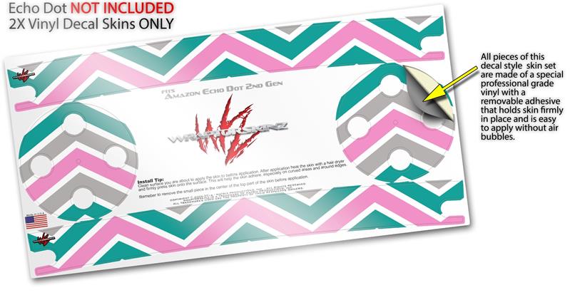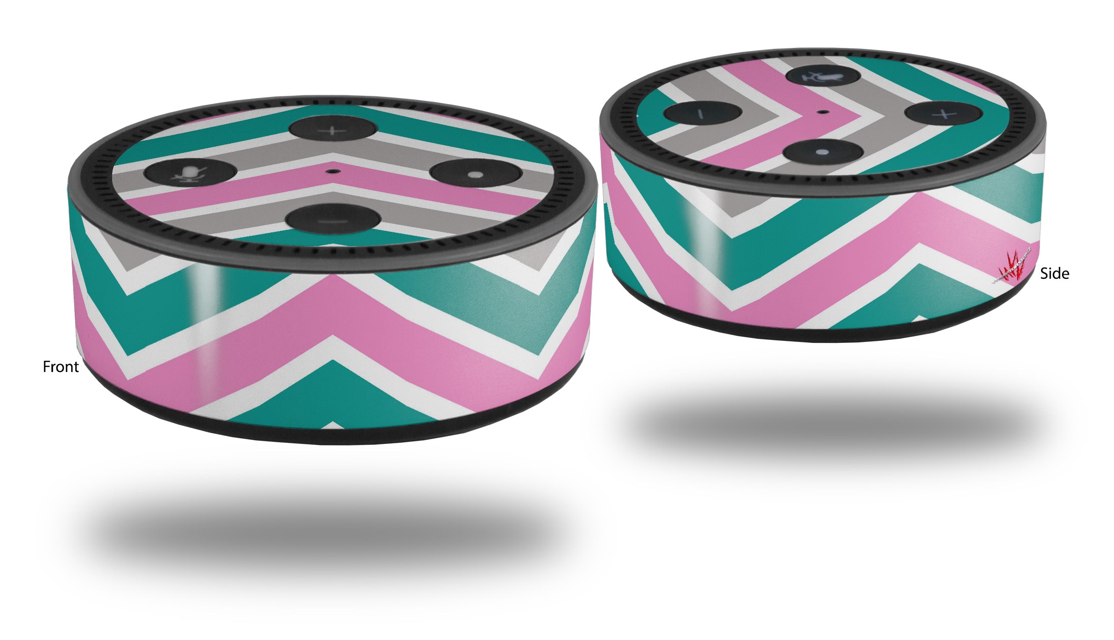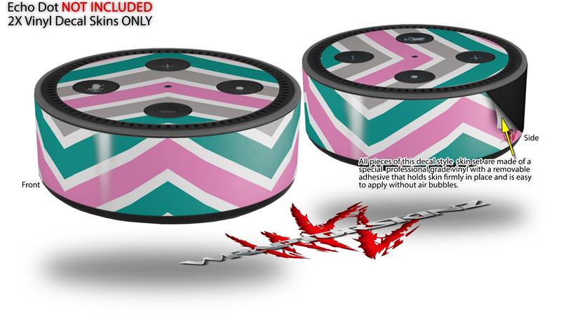 Skin Wrap Decal Set 2 Pack for Amazon Echo Dot 2 - Zig Zag Teal Pink and Gray (2nd Generation ONLY - Echo NOT INCLUDED)