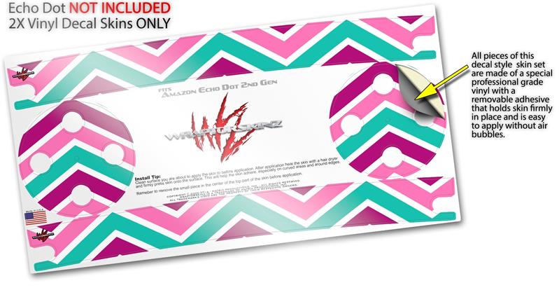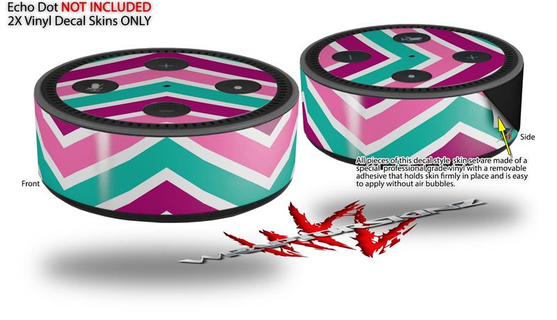 Skin Wrap Decal Set 2 Pack for Amazon Echo Dot 2 - Zig Zag Teal Pink Purple (2nd Generation ONLY - Echo NOT INCLUDED)