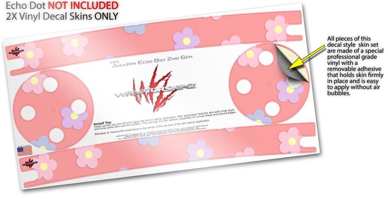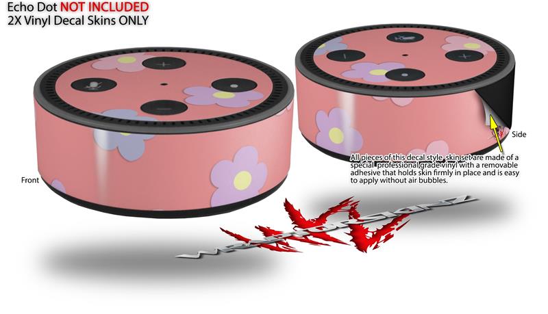 Skin Wrap Decal Set 2 Pack for Amazon Echo Dot 2 - Pastel Flowers on Pink (2nd Generation ONLY - Echo NOT INCLUDED)