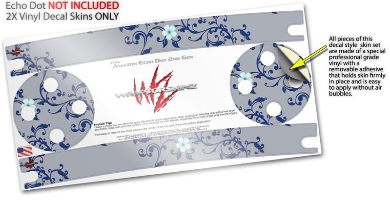 Skin Wrap Decal Set 2 Pack for Amazon Echo Dot 2 - Victorian Design Blue (2nd Generation ONLY - Echo NOT INCLUDED)