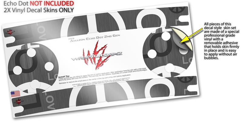 Skin Wrap Decal Set 2 Pack for Amazon Echo Dot 2 - Love and Peace Gray (2nd Generation ONLY - Echo NOT INCLUDED)