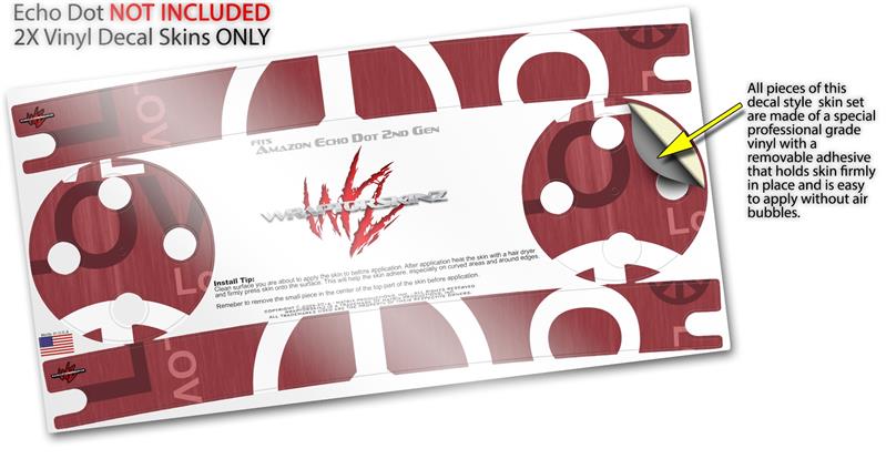 Skin Wrap Decal Set 2 Pack for Amazon Echo Dot 2 - Love and Peace Pink (2nd Generation ONLY - Echo NOT INCLUDED)