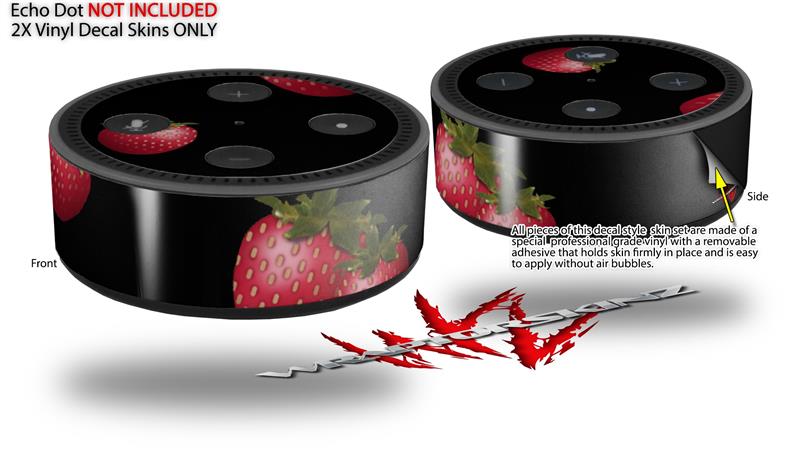 Skin Wrap Decal Set 2 Pack for Amazon Echo Dot 2 - Strawberries on Black (2nd Generation ONLY - Echo NOT INCLUDED)