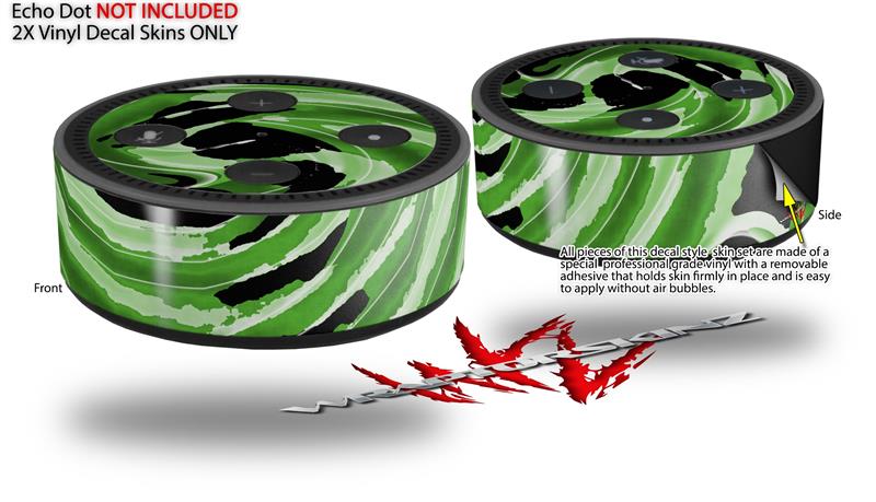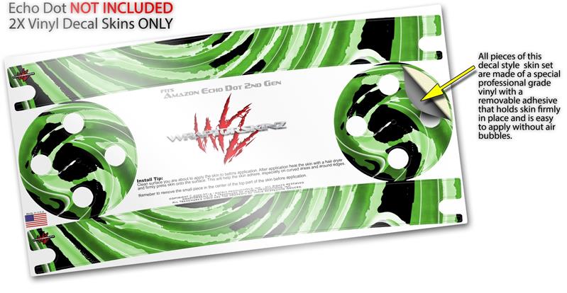 Skin Wrap Decal Set 2 Pack for Amazon Echo Dot 2 - Alecias Swirl 02 Green (2nd Generation ONLY - Echo NOT INCLUDED)