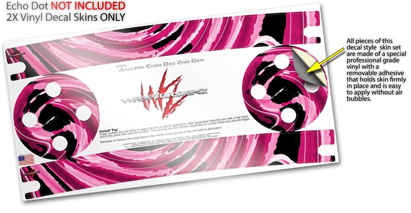 Skin Wrap Decal Set 2 Pack for Amazon Echo Dot 2 - Alecias Swirl 02 Hot Pink (2nd Generation ONLY - Echo NOT INCLUDED)