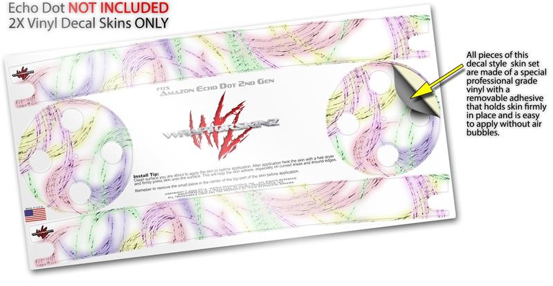 Skin Wrap Decal Set 2 Pack for Amazon Echo Dot 2 - Neon Swoosh on White (2nd Generation ONLY - Echo NOT INCLUDED)
