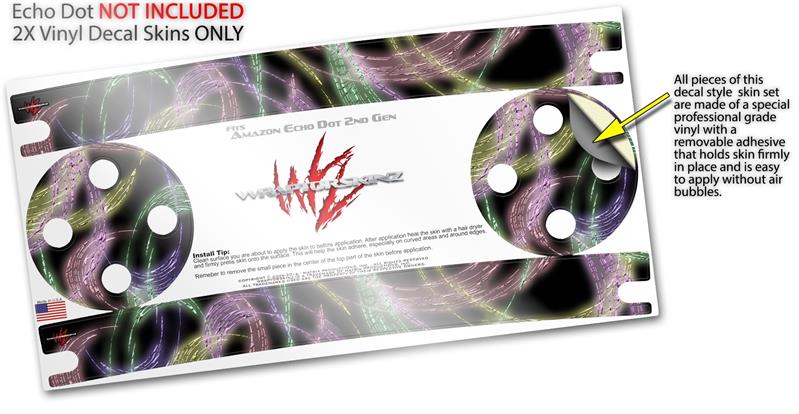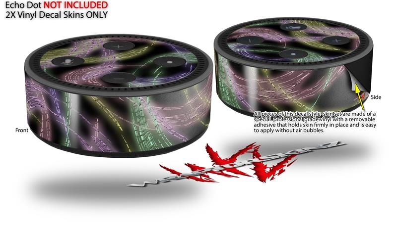 Skin Wrap Decal Set 2 Pack for Amazon Echo Dot 2 - Neon Swoosh on Black (2nd Generation ONLY - Echo NOT INCLUDED)