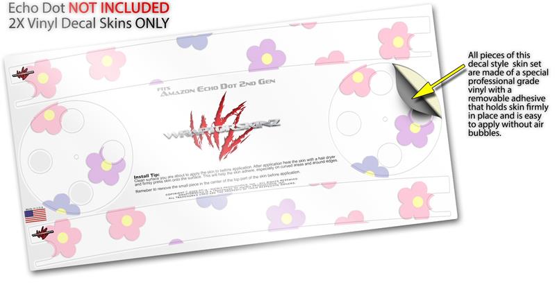 Skin Wrap Decal Set 2 Pack for Amazon Echo Dot 2 - Pastel Flowers (2nd Generation ONLY - Echo NOT INCLUDED)