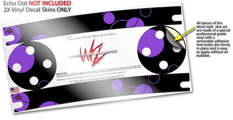 Skin Wrap Decal Set 2 Pack for Amazon Echo Dot 2 - Lots of Dots Purple on Black (2nd Generation ONLY - Echo NOT INCLUDED)