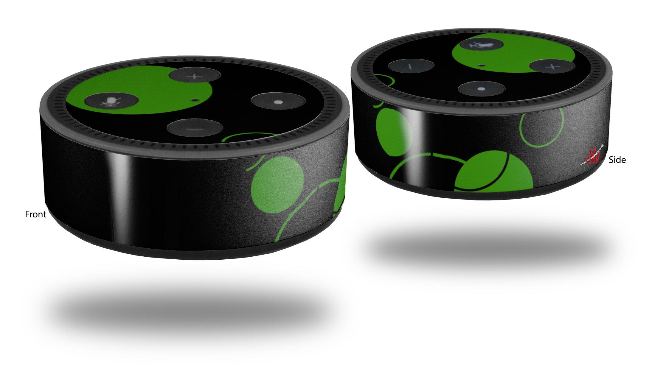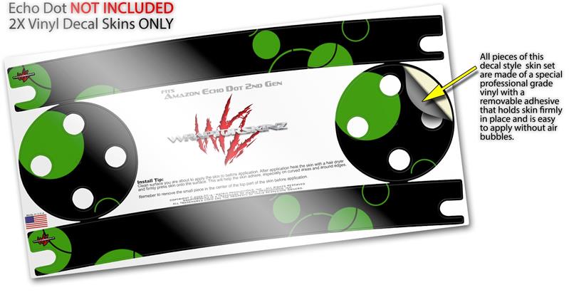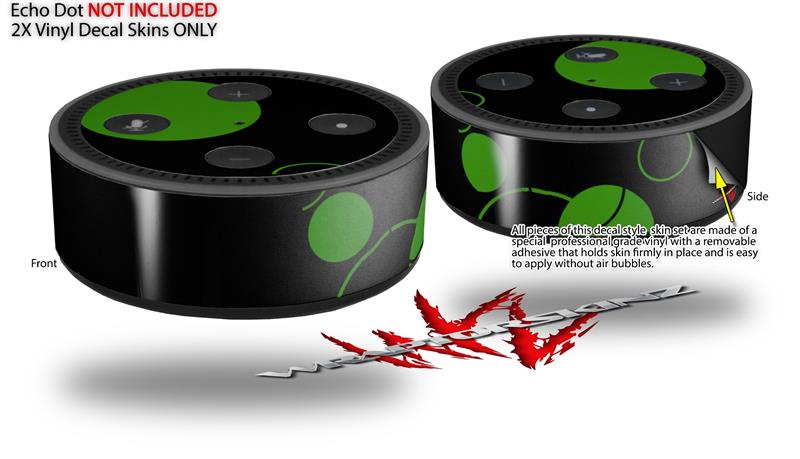 Skin Wrap Decal Set 2 Pack for Amazon Echo Dot 2 - Lots of Dots Green on Black (2nd Generation ONLY - Echo NOT INCLUDED)