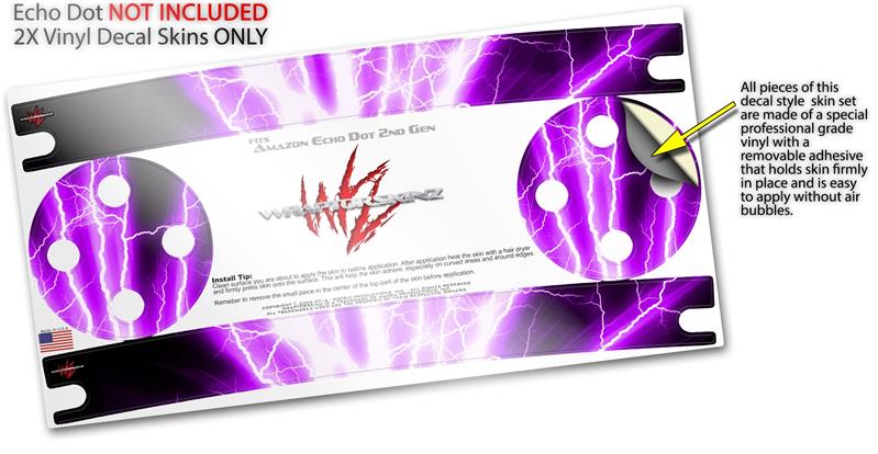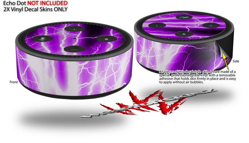 Skin Wrap Decal Set 2 Pack for Amazon Echo Dot 2 - Lightning Purple (2nd Generation ONLY - Echo NOT INCLUDED)