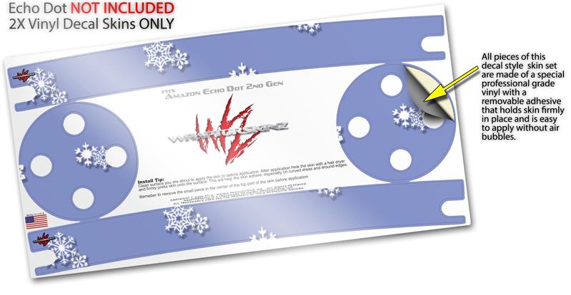 Skin Wrap Decal Set 2 Pack for Amazon Echo Dot 2 - Snowflakes (2nd Generation ONLY - Echo NOT INCLUDED)