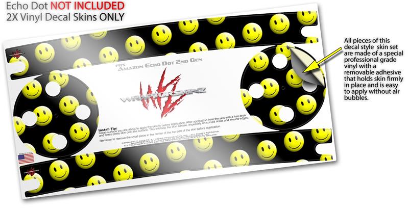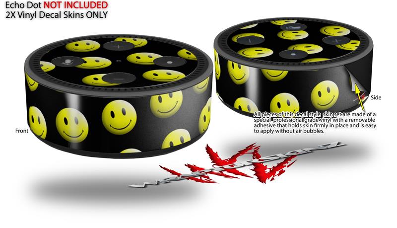 Skin Wrap Decal Set 2 Pack for Amazon Echo Dot 2 - Smileys on Black (2nd Generation ONLY - Echo NOT INCLUDED)