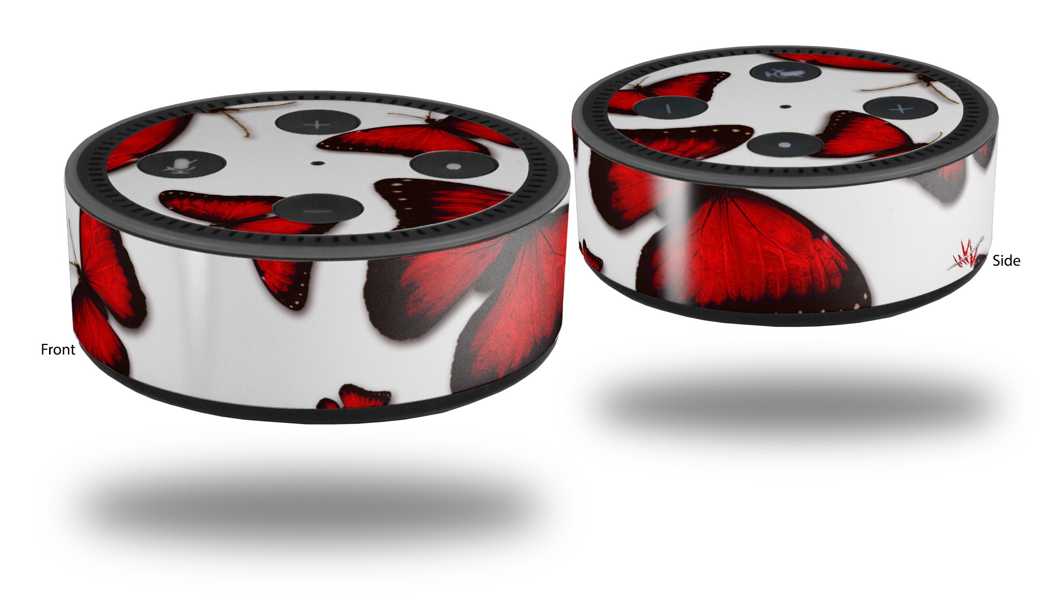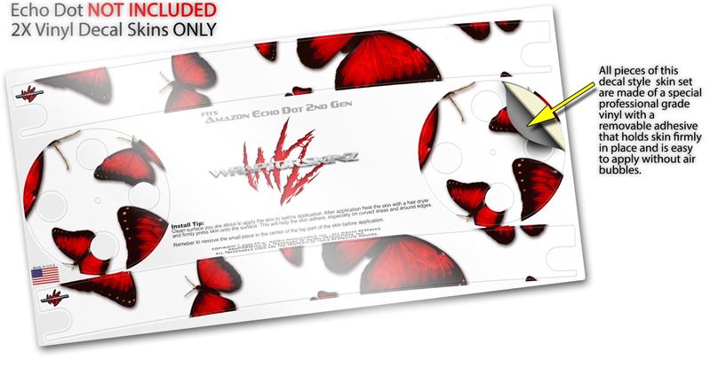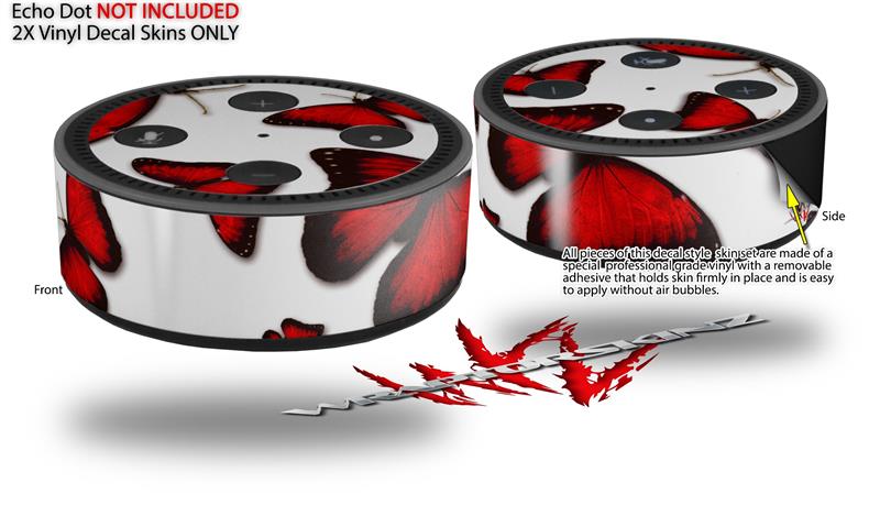 Skin Wrap Decal Set 2 Pack for Amazon Echo Dot 2 - Butterflies Red (2nd Generation ONLY - Echo NOT INCLUDED)