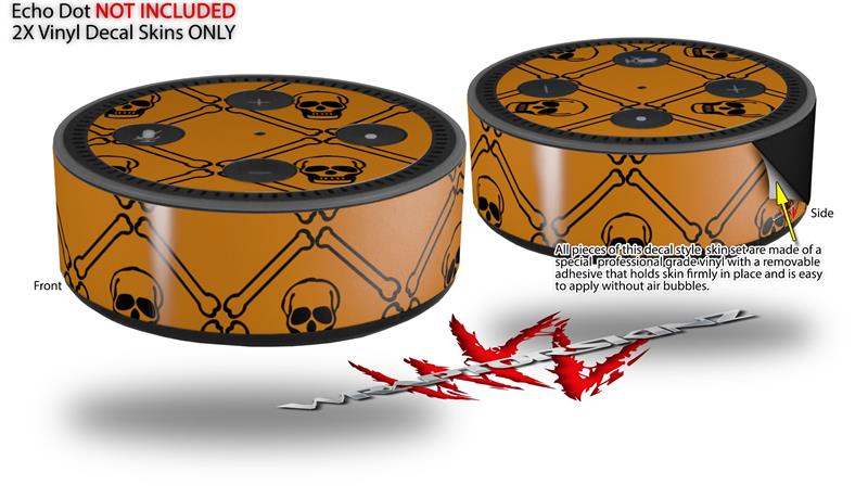 Skin Wrap Decal Set 2 Pack for Amazon Echo Dot 2 - Halloween Skull and Bones (2nd Generation ONLY - Echo NOT INCLUDED)
