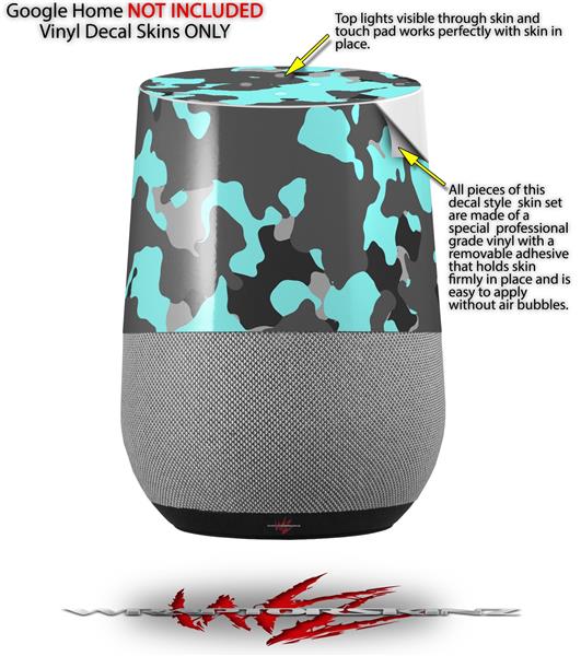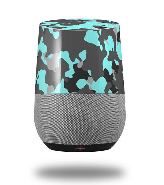 Decal Style Skin Wrap for Google Home Original - WraptorCamo Old School Camouflage Camo Neon Teal (GOOGLE HOME NOT INCLUDED)