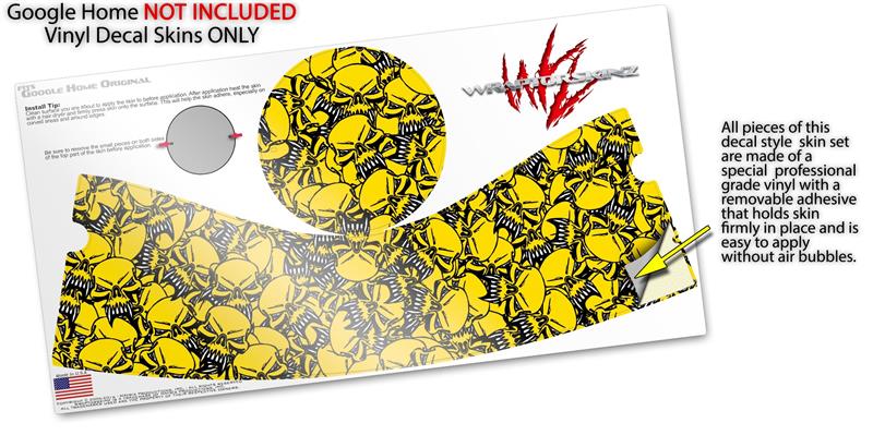 Decal Style Skin Wrap for Google Home Original - Scattered Skulls Yellow (GOOGLE HOME NOT INCLUDED)