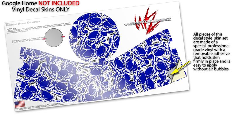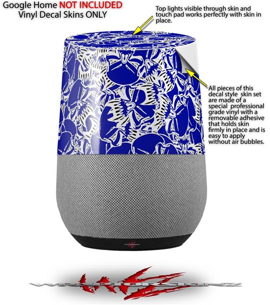 Decal Style Skin Wrap for Google Home Original - Scattered Skulls Royal Blue (GOOGLE HOME NOT INCLUDED)