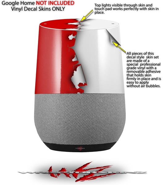 Decal Style Skin Wrap for Google Home Original - Ripped Colors Red White (GOOGLE HOME NOT INCLUDED)