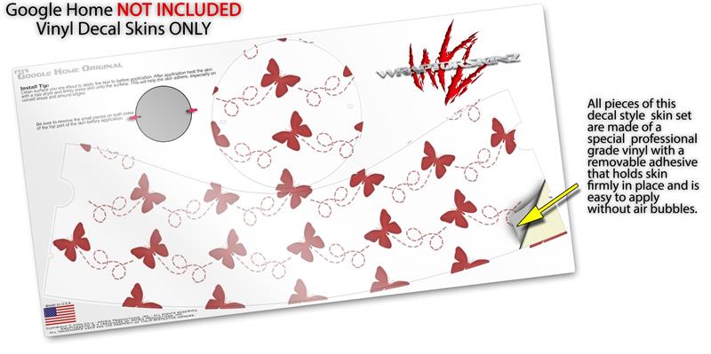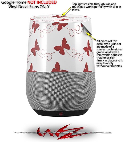 Decal Style Skin Wrap for Google Home Original - Pastel Butterflies Red on White (GOOGLE HOME NOT INCLUDED)