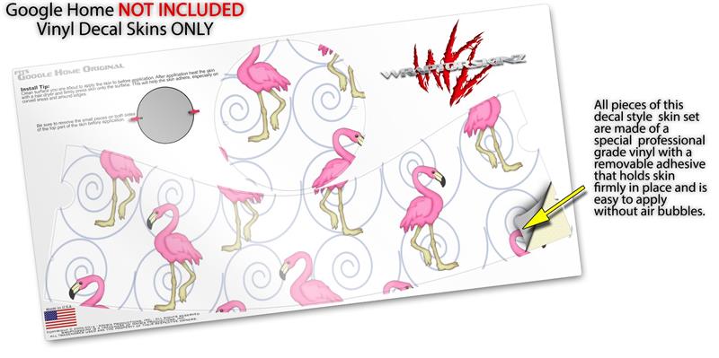 Decal Style Skin Wrap for Google Home Original - Flamingos on White (GOOGLE HOME NOT INCLUDED)