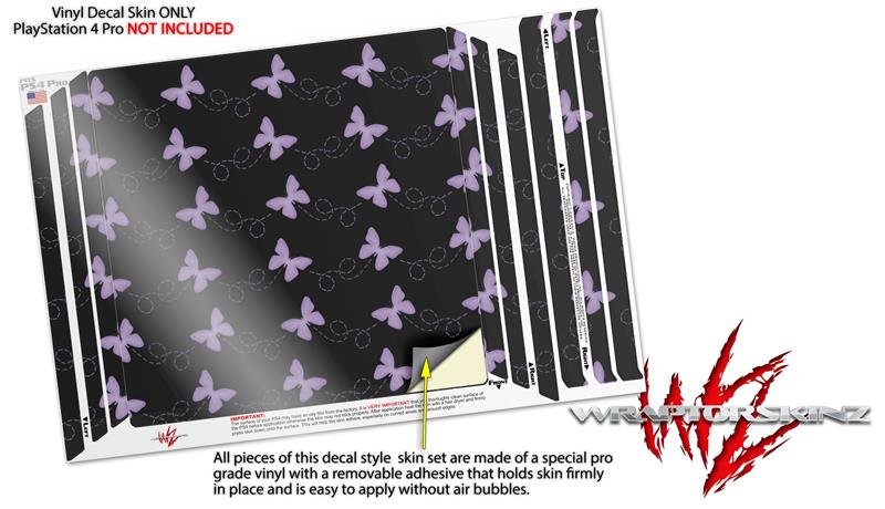 Vinyl Decal Skin Wrap compatible with Sony PlayStation 4 Pro Console Pastel Butterflies Purple on Black (PS4 NOT INCLUDED)